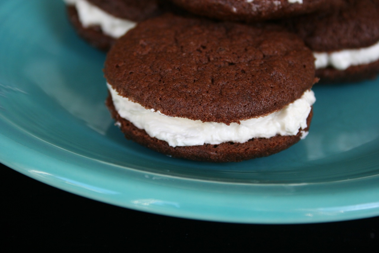 This is a soft, scrumptious sandwich cookie that I developed from my own chocolate drop cookie recipe.  The cookie is easy to prepare – a straight forward drop cookie.   The buttercream is a classic Swiss meringue buttercream recipe – silky smooth and less sweet than a powdered sugar frosting.  A great video tutorial is here.  You can do this buttercream recipe!  It’s pretty fool proof once you get it.  Please reply if you have any questions.  You are the boss of this buttercream!  Enjoy!
