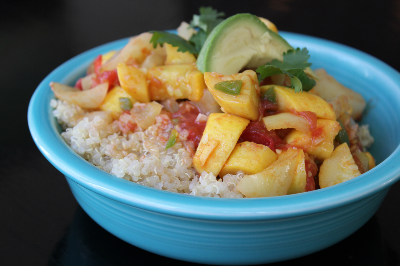 Quinoa is a protein-packed, easy to make grain with a rich nutty flavor. Here’s a quick saute that pairs quinoa with a couple items playing starring roles in my CSA box this season: summer squash, tomato, and bell pepper.