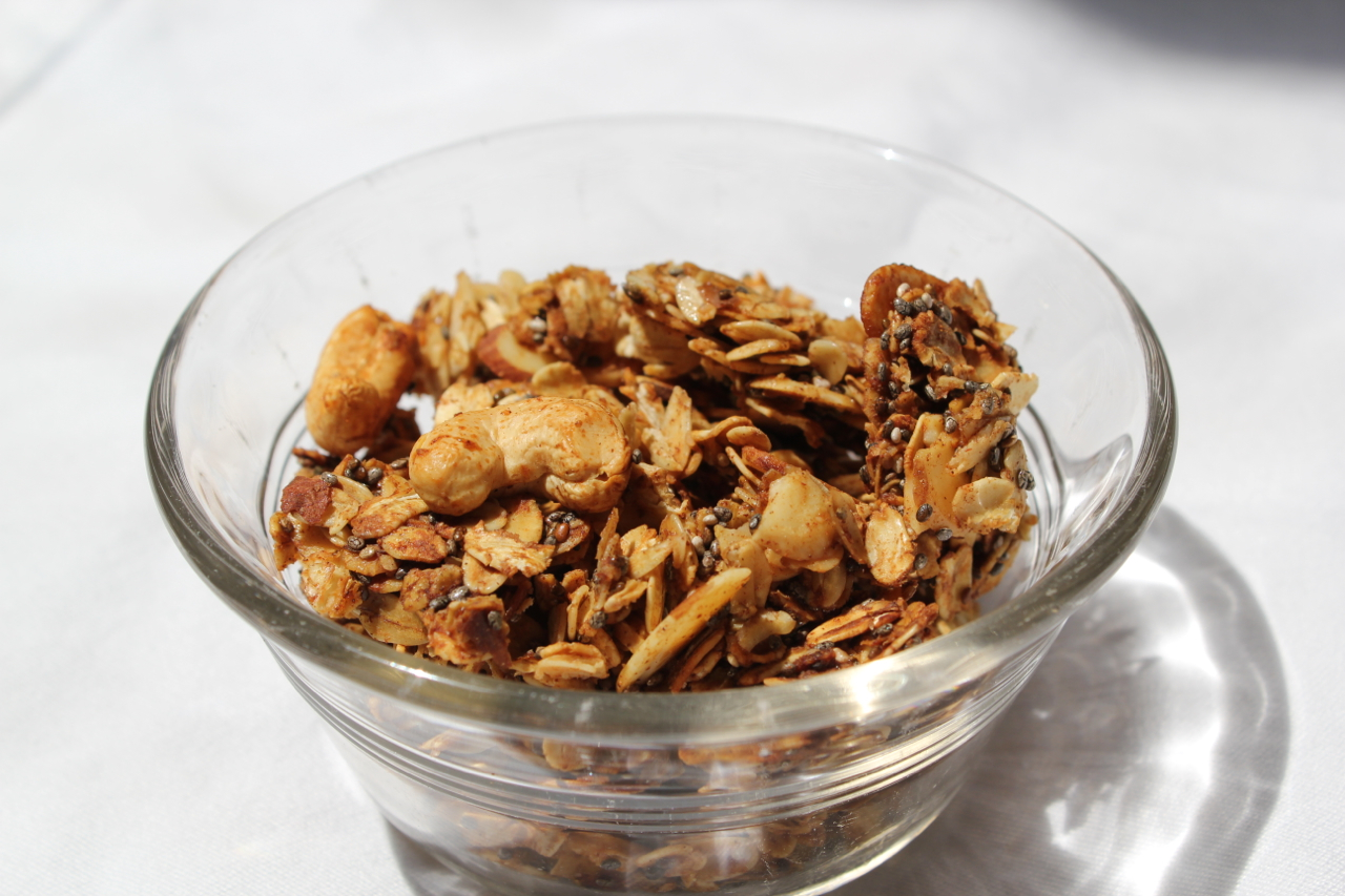 1 cup chia seed (substitution: sesame seeds or unsweetened dried, flaked coconut)