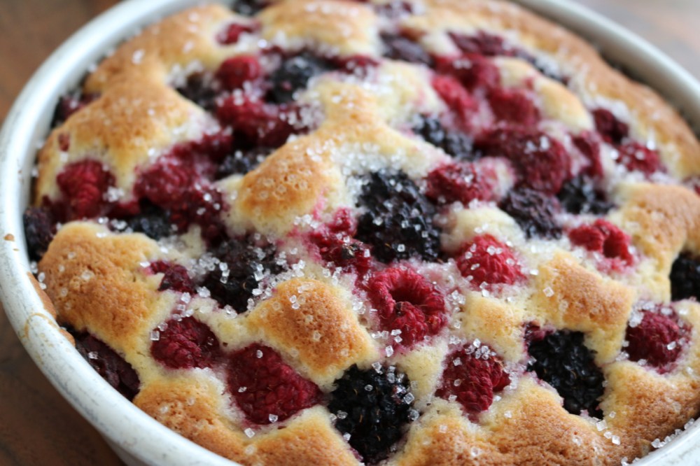 Simple, sweet, and packed with ripe fruit — a cake that tastes like summer. I developed this cake in an effort to make the best of a friend’s blackberry patch and the luscious peaches on my counter. The cake is buttery and tender but just dense enough to support the ripe stone fruit and berries that might sink into a lighter cake. This beautifully textured cake would also take kindly to fresh blueberries, raspberries, plums, sweet cherries, apricots, nectarines, or a combo of what you have on hand. A dollop of whipped cream makes it a perfectly easy summer treat.