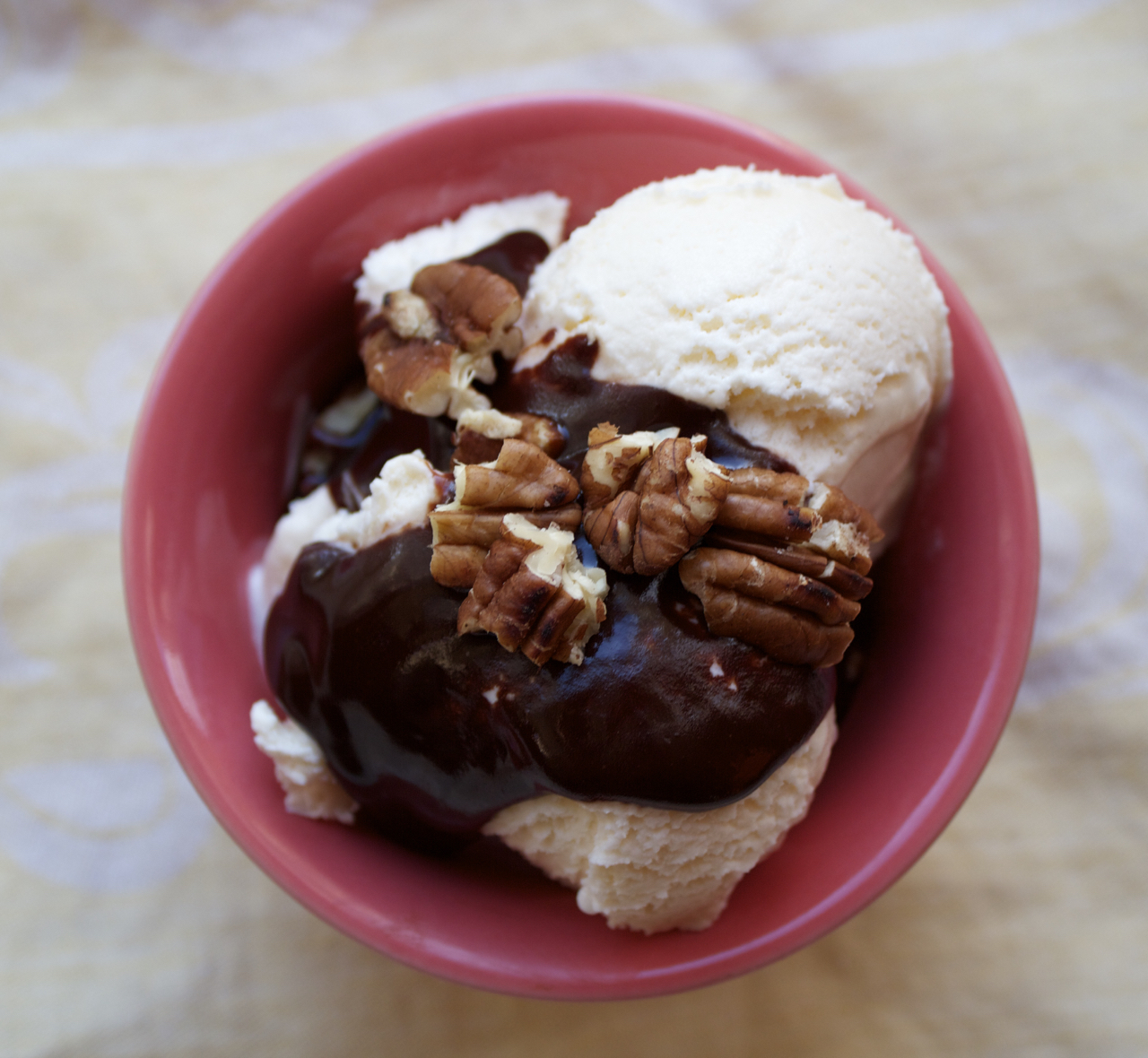 Here is my version of perfect hot fudge sundae chocolate sauce. It’s chocolatey, mildly sweet, smooth and unctuous without being too rich, bitter, or cloyingly sweet. It also happens to be a very simple and frugal recipe that you can make and use in under an hour.