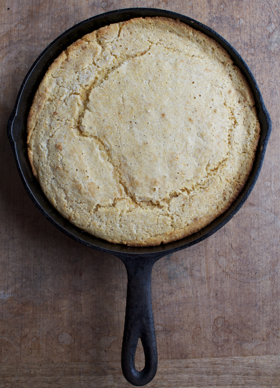 ** A well seasoned cast iron skillet will turn out a perfect golden crust and release the cornbread as easily as a non-stick pan would. If your pan isn’t very well seasoned, or if it’s new, you may have to coax the cornbread out with a spatula.