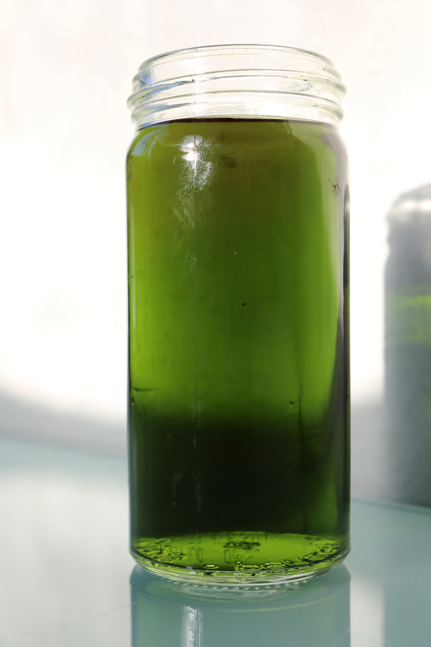 Creating this sweet liqueur is simple, and made in two stages. The first stage involves packing fresh bay leaves in a jar and covering with grain alcohol. After soaking for five days or so, strain off the bay leaves. The resulting infusion is a stunning deep emerald green.