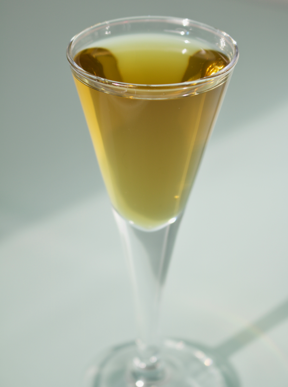 While the scent of the crushed bay leaf is pungent, the liqueur is surprisingly rounded and balanced. It’s gentle on the taste buds, but full of scent and depth. This liqueur is strong and sweet — rather like Absinthe. Served over ice in small quantities, it is an intriguing apertif. I like to use it as a mixer in cocktails.