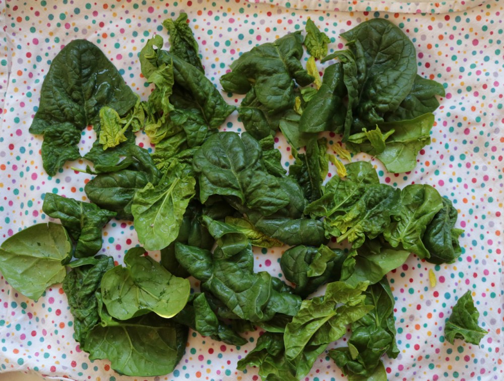 Here’s a tip: with all my loose salad greens I give them a quick dunk in a big bowl of cold water. Then heap the wet greens onto a clean kitchen towel, roll up, and store in a moisture proof bag or container in the fridge. This simple technique keeps these tender greens at the peak of freshness for a week or more, and also makes salad prep super fast.