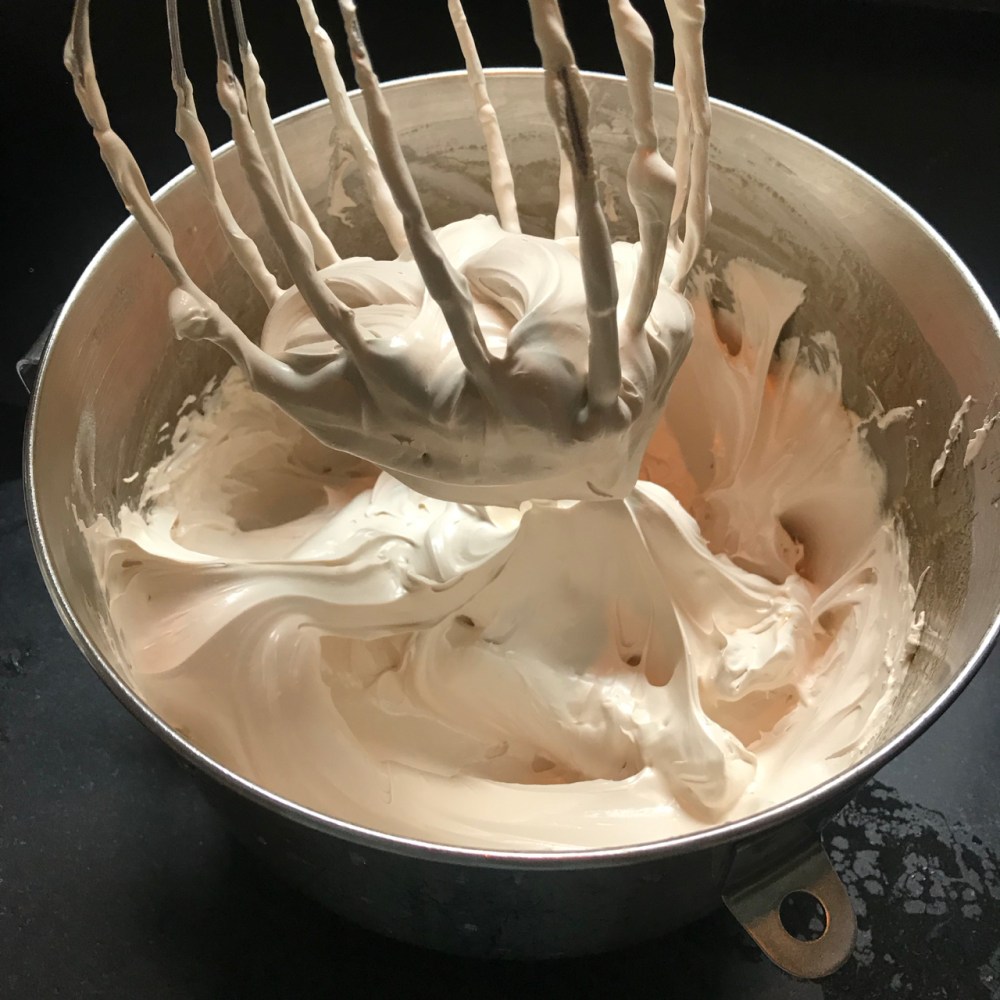 Transfer bowl to the stand mixer and, using whisk attachment, whisk on medium until it is fluffy and cooled to near room temp. It should be a soft marshmallow consistency.