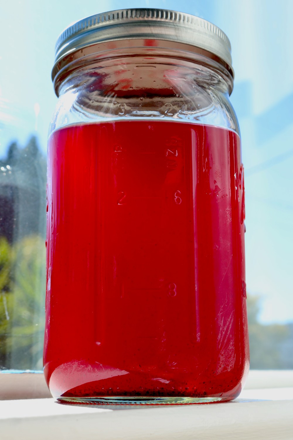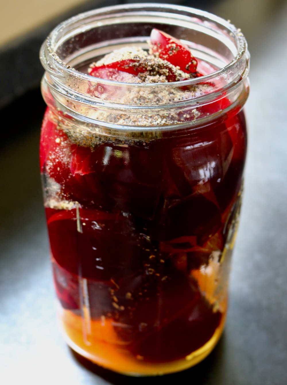 Plums and spices in glass jar, ready for sugar and grain alcoholI let the plum mixture rest in the fridge for a couple days, strain and store. It’s super easy to craft a cocktail with this plum base on hand. It’ll last for several weeks to a month if kept cold — ready for a cooling, low-alcohol refresher on a summer day. Enjoy!