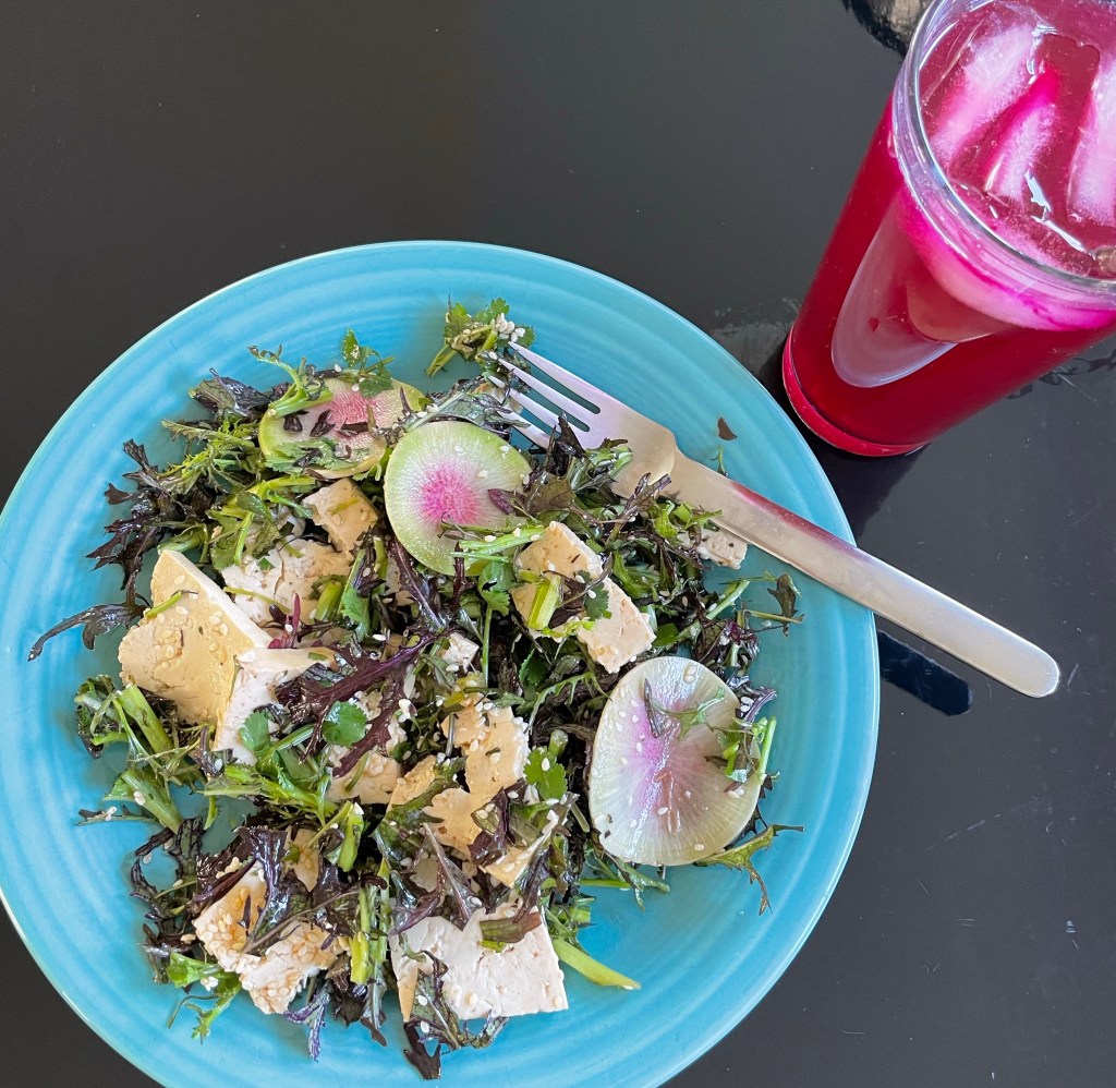 This winter creation makes use of fresh crisp purple mizuna and strawberry daikon. Apologies to my recipe followers — this isn’t a precise one. Trust yourself! And try putting this together. I think you’ll like it. Enjoy!